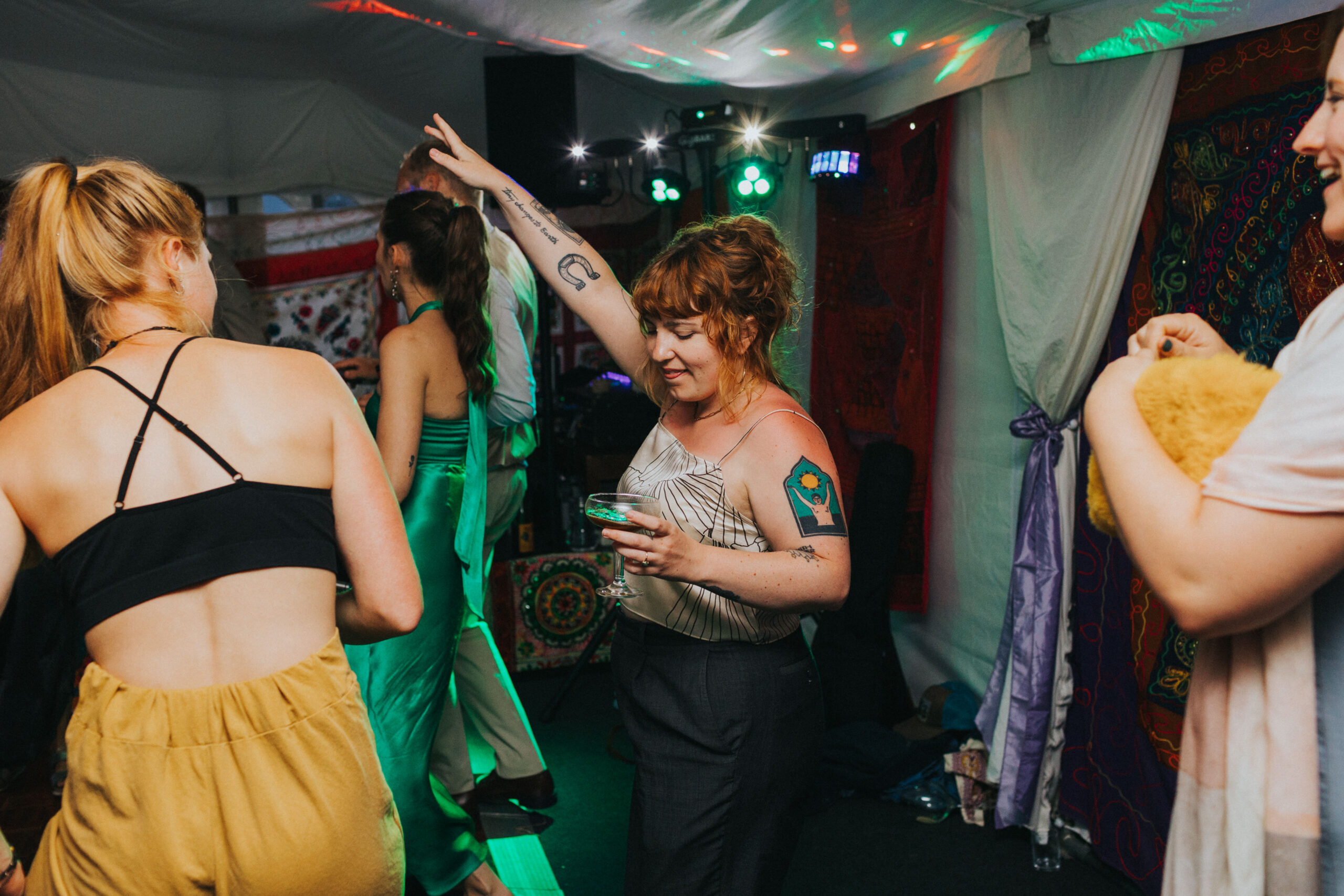 Sam, the bride, has a special connection with pigeons — a little quirk that made its way into the day in the most unexpected way. A fake pigeon was tucked into the wooden arbour as a nod to her love for them… and during the speeches, in a moment so perfect it almost felt scripted, a real pigeon landed squarely on the best woman’s head mid-speech. The whole place erupted in laughter — it was one of those magical, serendipitous moments that no one will ever forget.