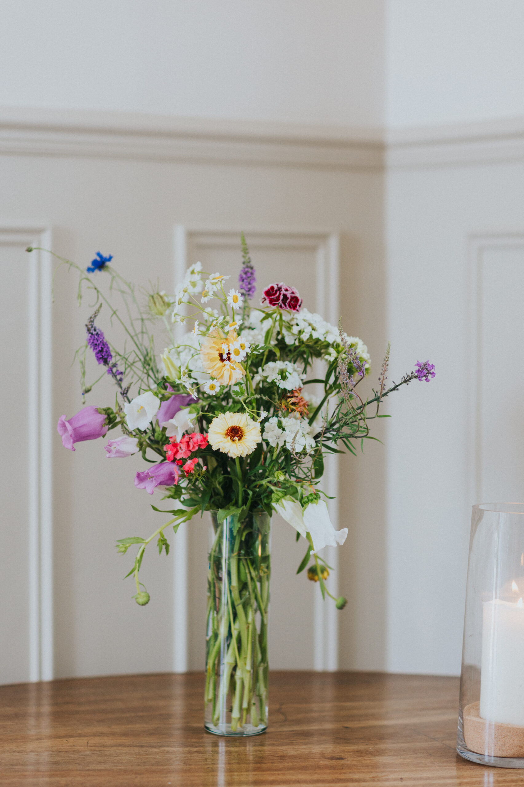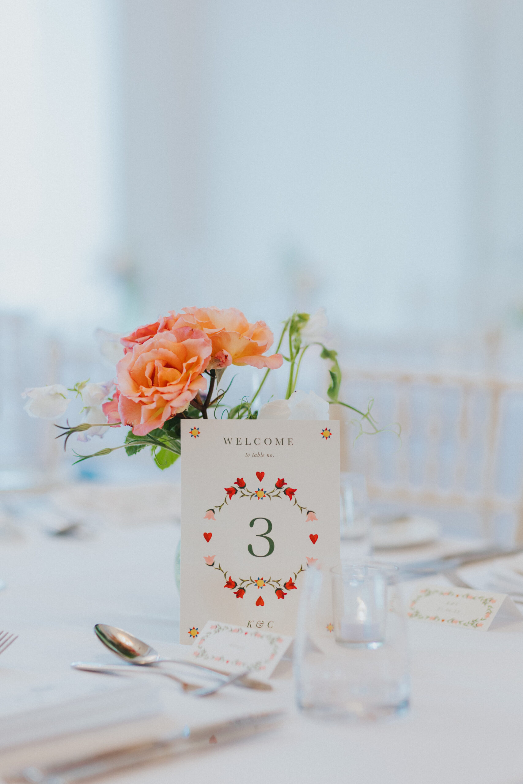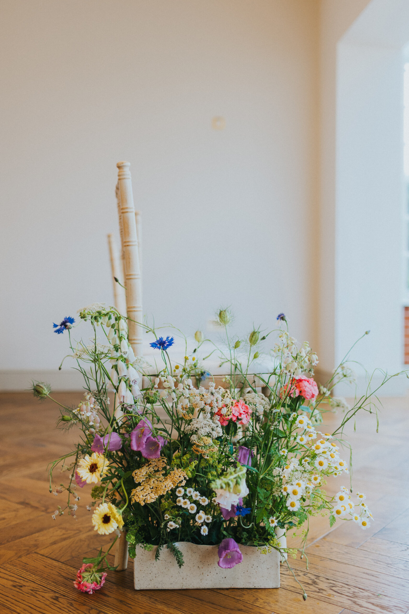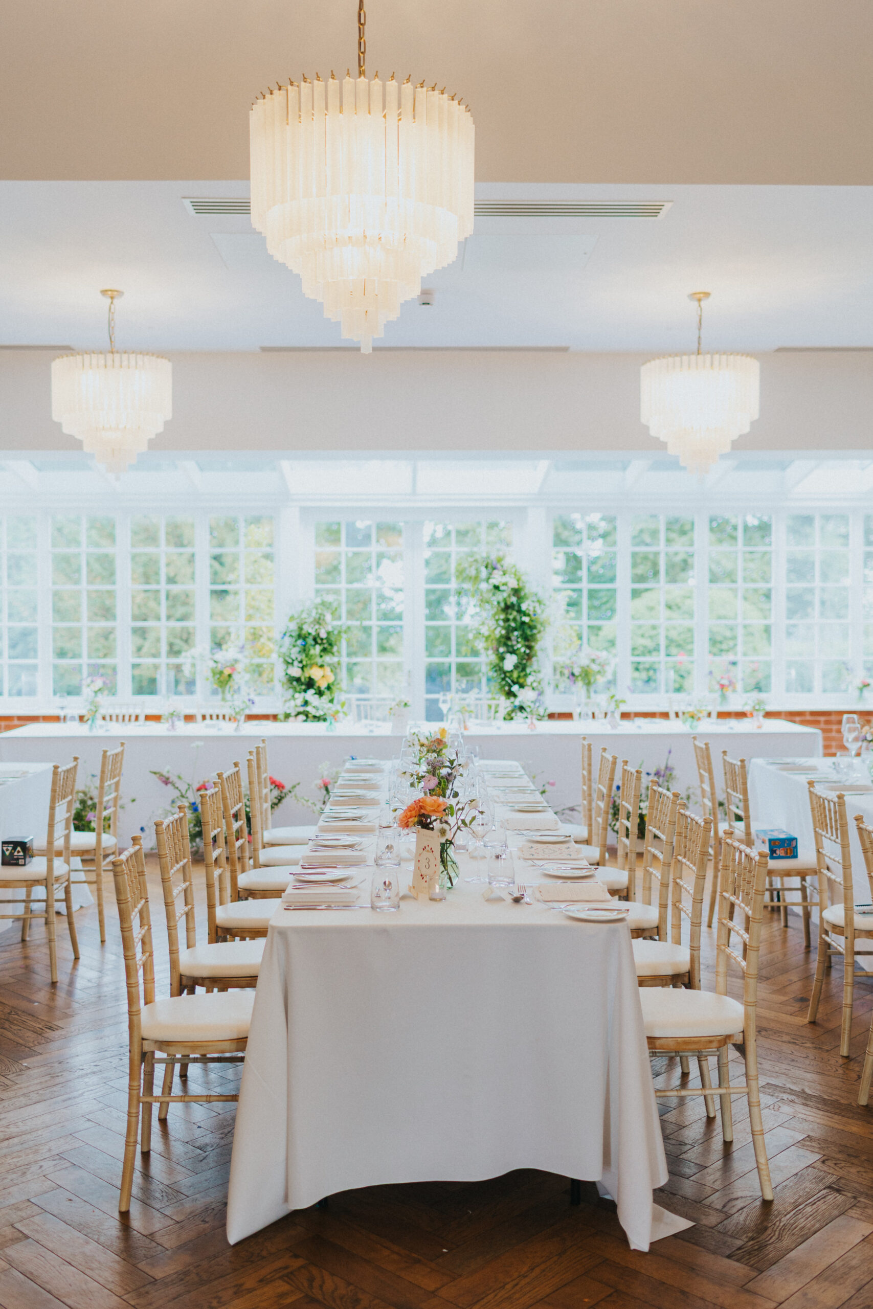 Chris and Kate had originally planned to say their vows outside in Stockton House’s gardens. June weather, however, had other ideas. Instead, their ceremony moved indoors, and it was just as special. The ceremony room, filled with natural light from Stockton House’s beautiful large windows, created a soft, romantic atmosphere that worked perfectly with their floral styling.