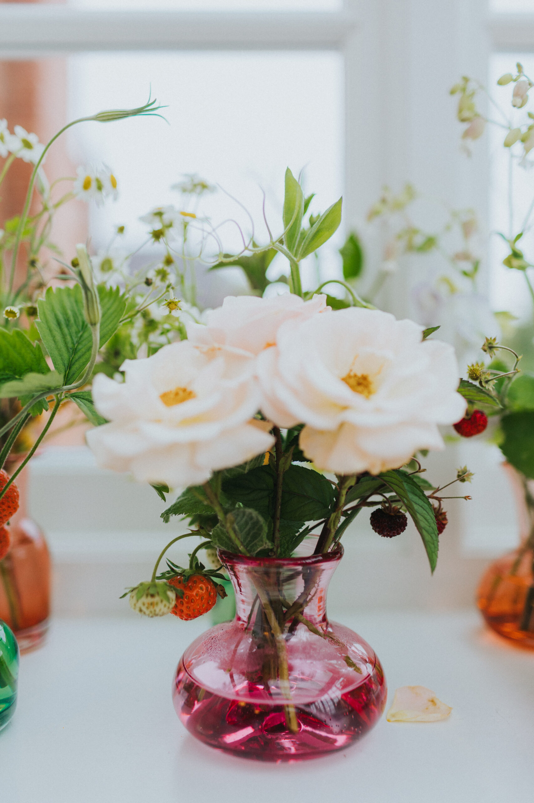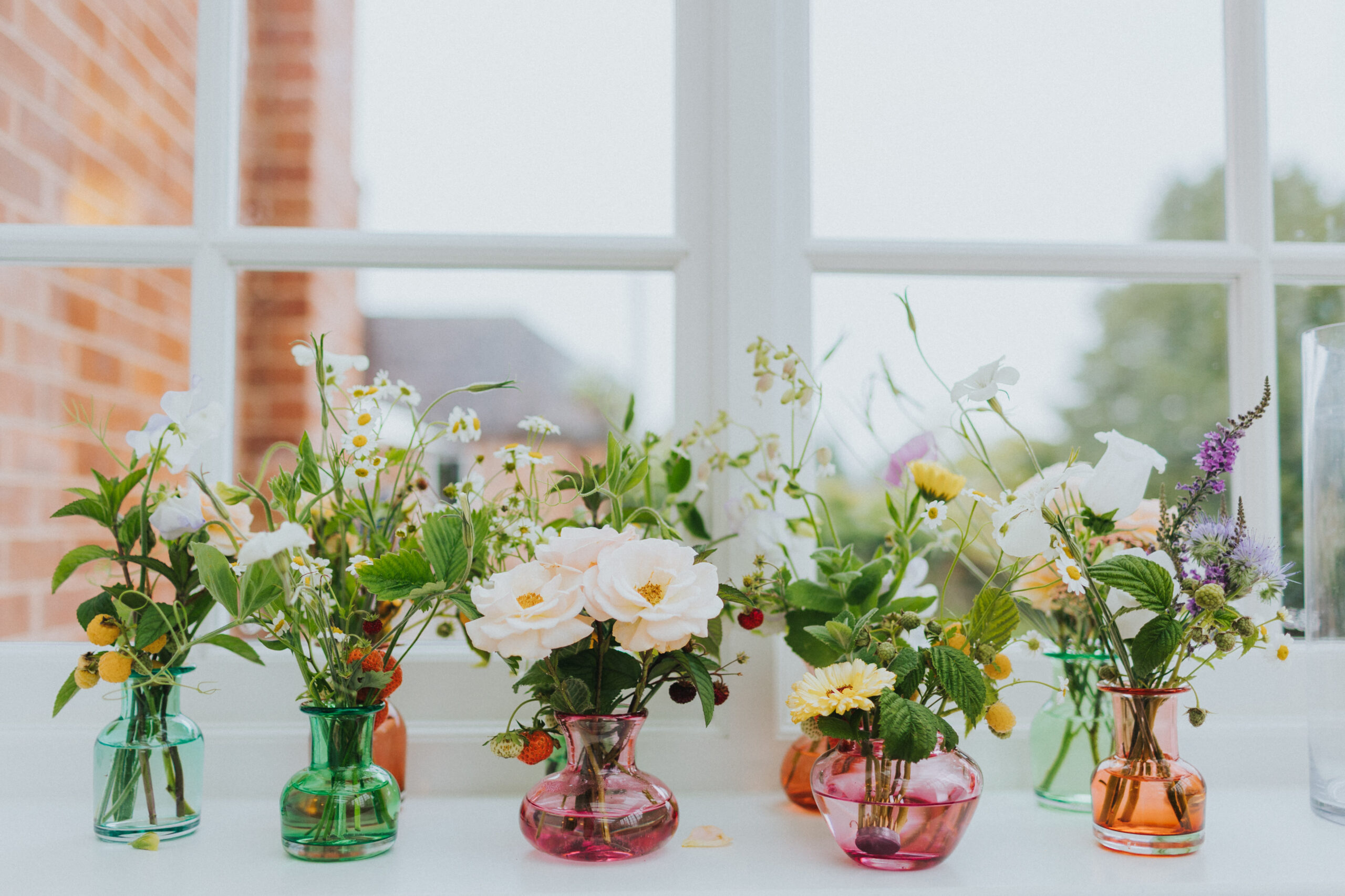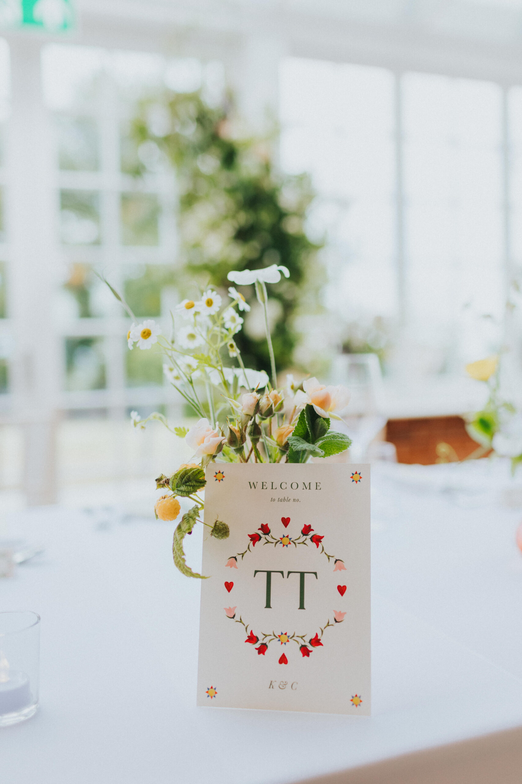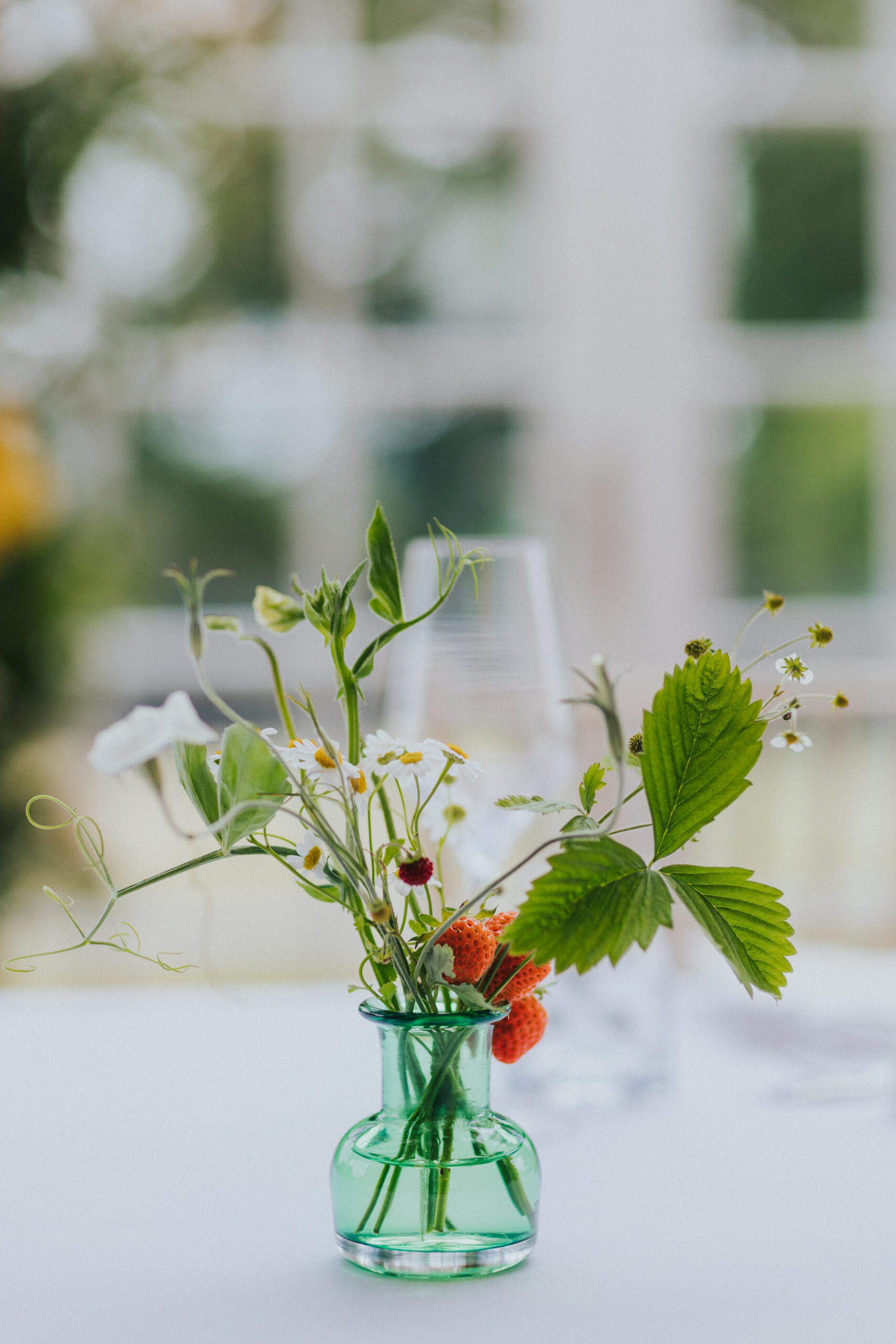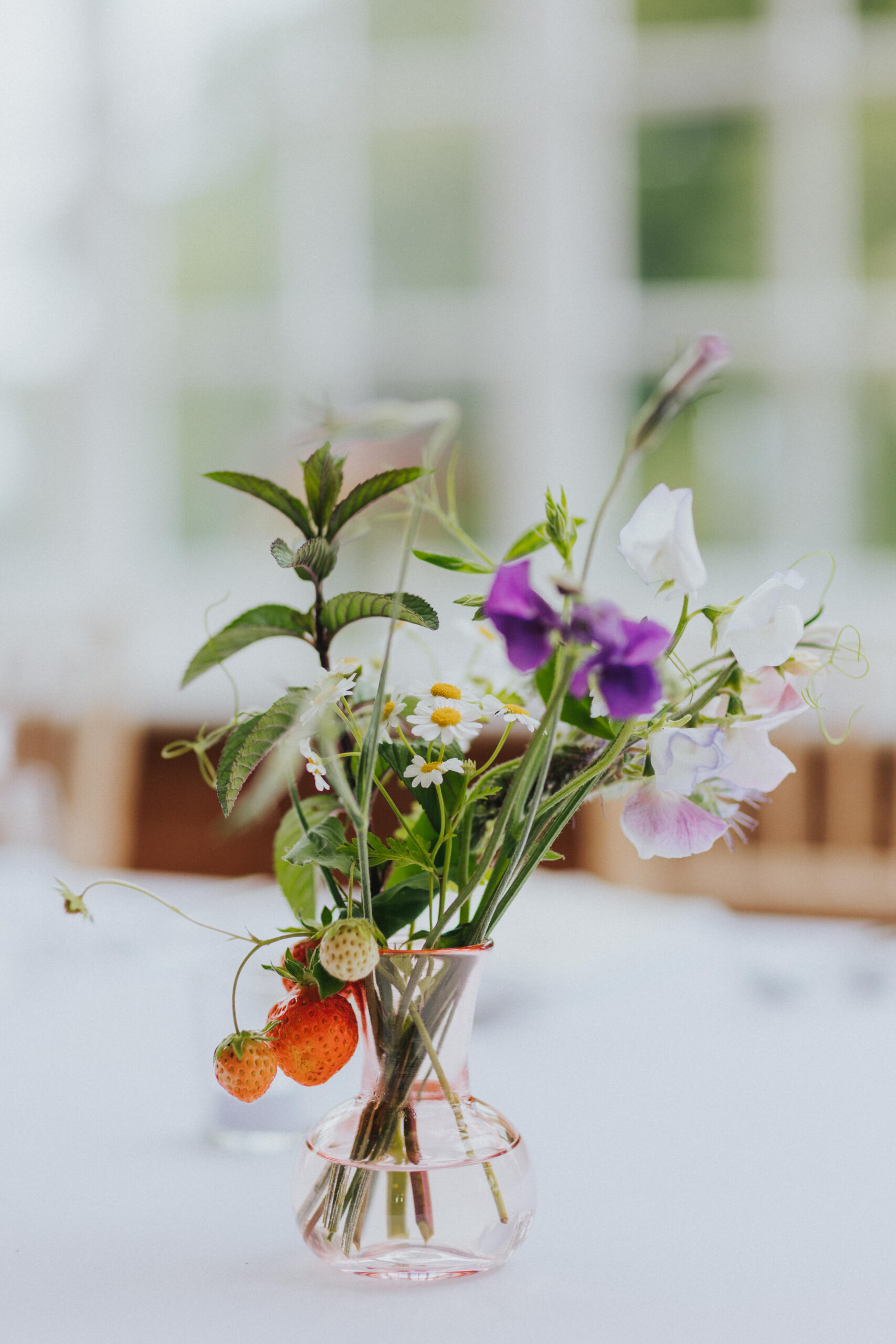 The table florals were equally memorable. The use of fruit woven into the arrangements was such a clever touch, and the strawberries instantly caught my eye. It was the first time I’d seen strawberries used as part of wedding table displays, and I absolutely loved how playful and summery it felt, ideal for a June wedding at Stockton House.